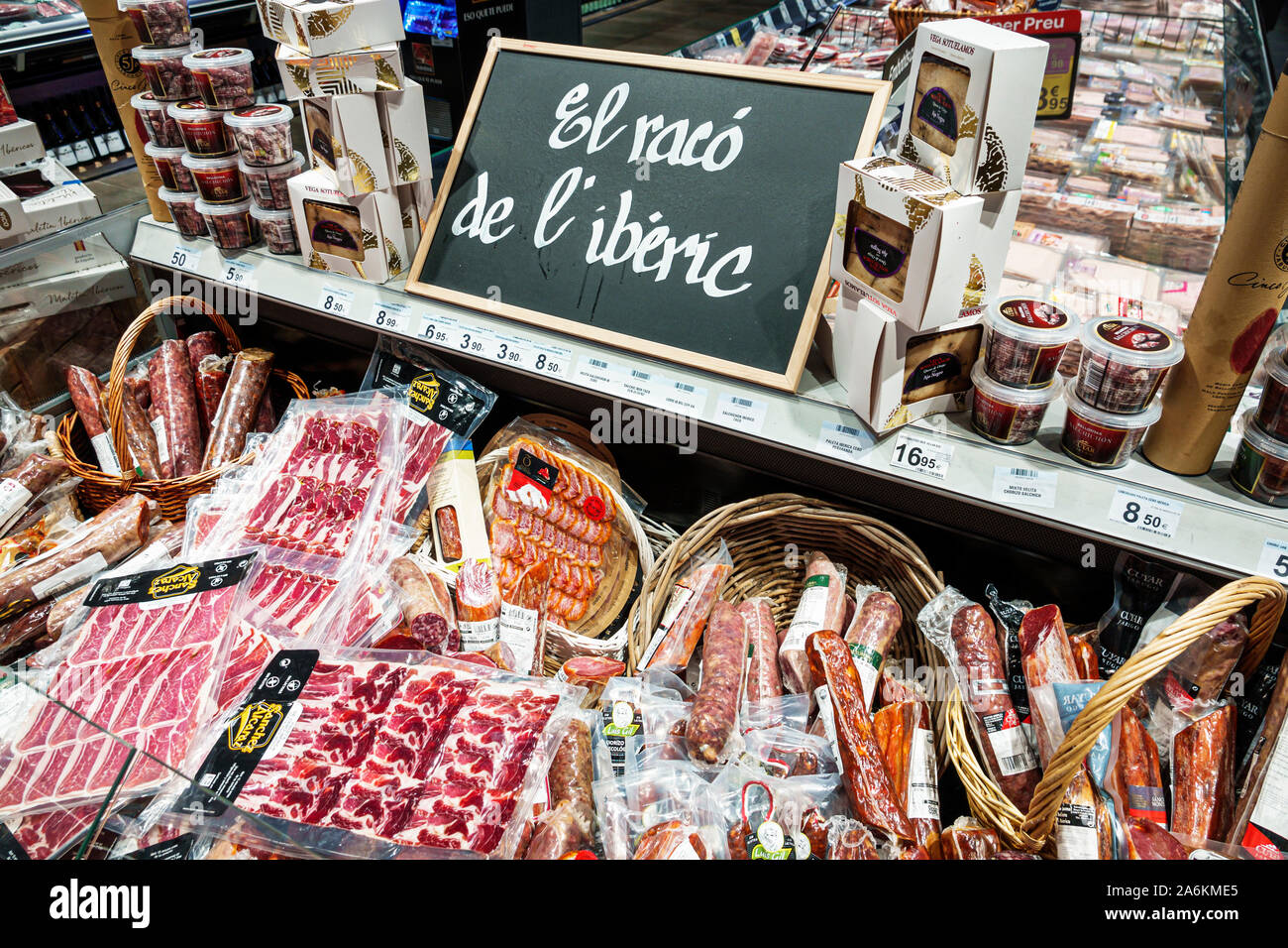 Barcelona Spain Catalonia Poblenou Avinguda Diagonal Avenue Glories Shopping Center Mall Carrefour Supermarket Deli Meats Sausages Iberian Iberic Ham Stock Photo Alamy